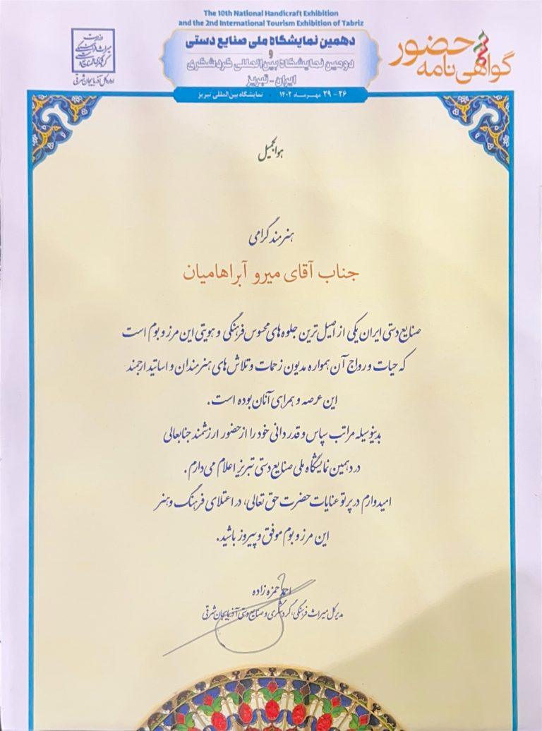 شرکت در دهمین نمایشگاه صنایع دستی تبریز