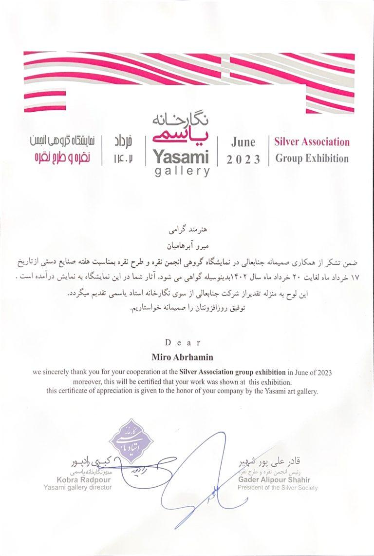 شرکت در نمایشگاه گروهی انجمن نقره و طرح نقرهبمناسبت هفته صنایع دستی